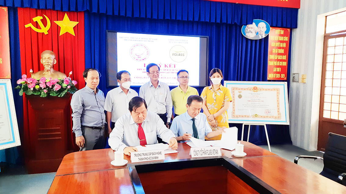 Lễ ký kết giữa Nhà trường và các doanh nghiệp tại trường Trung cấp Bách Nghệ Thành phố Hồ Chí Minh